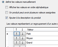 Si le produit s'affiche en ordre alphabétique, vous pouvez simple entrer les valeurs avec des virgules ou des barres obliques "/".